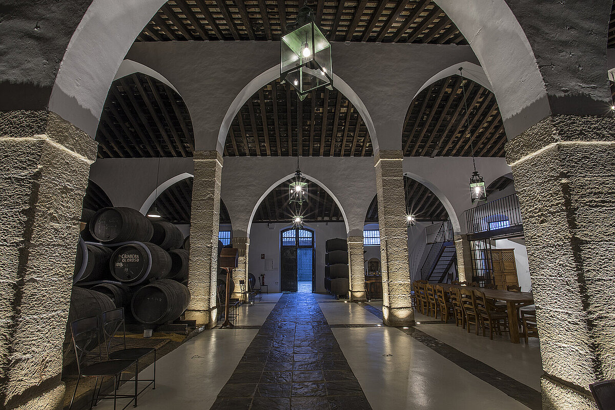Fue el primer paso, había que rehabilitar de manera integral sus centenarias instalaciones situadas en la calle Justicia 28, en el barrio de San Mateo, una de las últimas bodegas que perviven en el Jerez de intramuros. El proyecto, que tardó año y medio en completarse, ha respetado en todo momento el valor patrimonial e histórico del edificio.